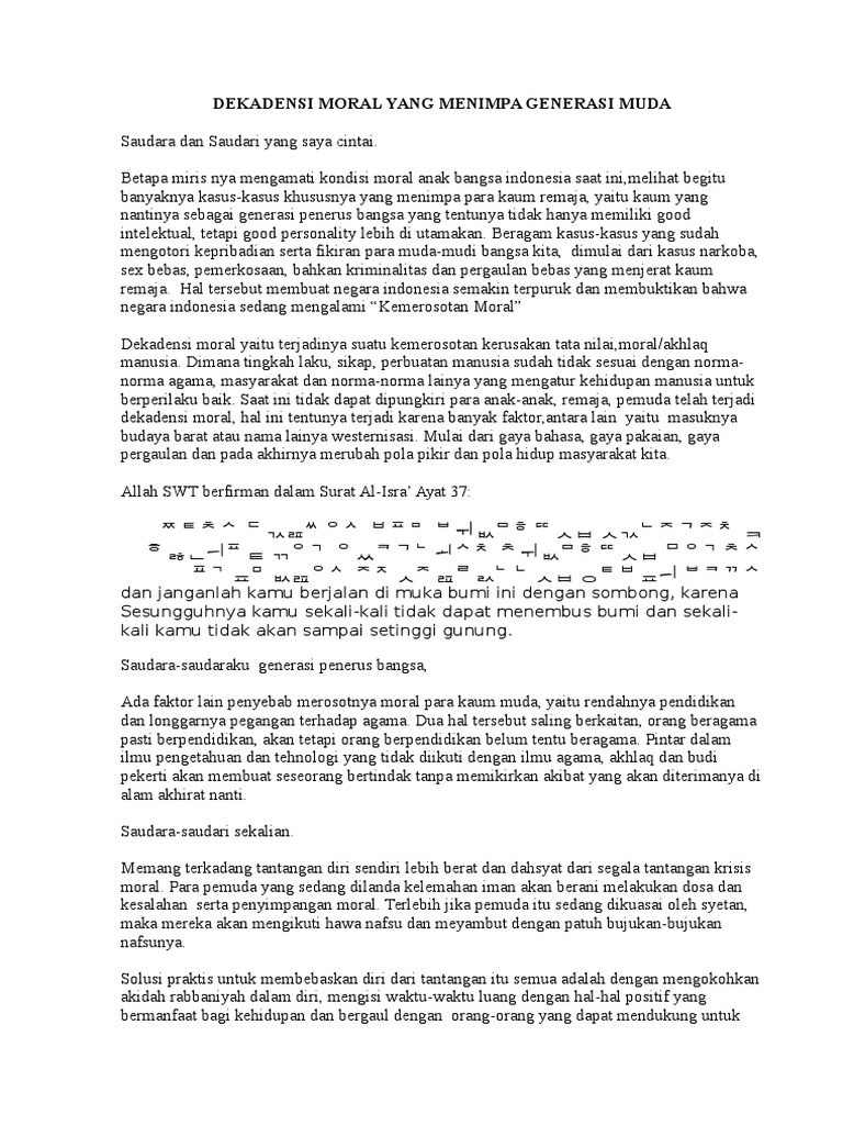 Contoh Pranatacara Bahasa Jawa 17 Agustus Ilmusosial Id from imgv2-1-f.scribdassets.com Hadirin yang saya hormati, pada kesempatan berbahagia ini saya akan membawakan pidato tentang pemuda sebagai generasi kunci masa depan indonesia. Sehingga di artikel ini kita hanya fokus pada contoh teks pidato saja. Pidato sendiri memiliki berbagai jenis, diantaranya hari kemerdekaan, pidato tentang lingkungan, pidato tentang guru, dan sebagainya. Daftar istilah dalam dunia globalisasi yang digunakan dalam percakapan ini dapat anda pelajari di akhir pidato. Karakter dan sifat generasi muda muslim untuk mengembangkan negara indonesia menjadi lebih baik apabila saat ini kita ingin membicarakan masalah kaum muda, maka untuk mendapati berita di beberapa artikel (tulisan) dan kita sendiri juga bahkan sering menyaksikan bagaimana peran partisipasi pemuda yang sangat besar dalam membangun, menyambung. Oleh karenanya, agar tercipta negeri indonesia yang aman, tentram, makmur serta mewujudkan masyarakat yang agamis, maka kita am dan mengenaskan. Contoh pidato singkat tentang generasi milenial yang terhormat bapak/ibu kepala sekolah. Wb pertama marilah kita panjatkan puji syukur atas berkah dan rahmat yang telah allah berikan pada kami, sehingga kita dapat berkumpil dalam keadaan sehat walafiat tanpa ada halangan apapun.